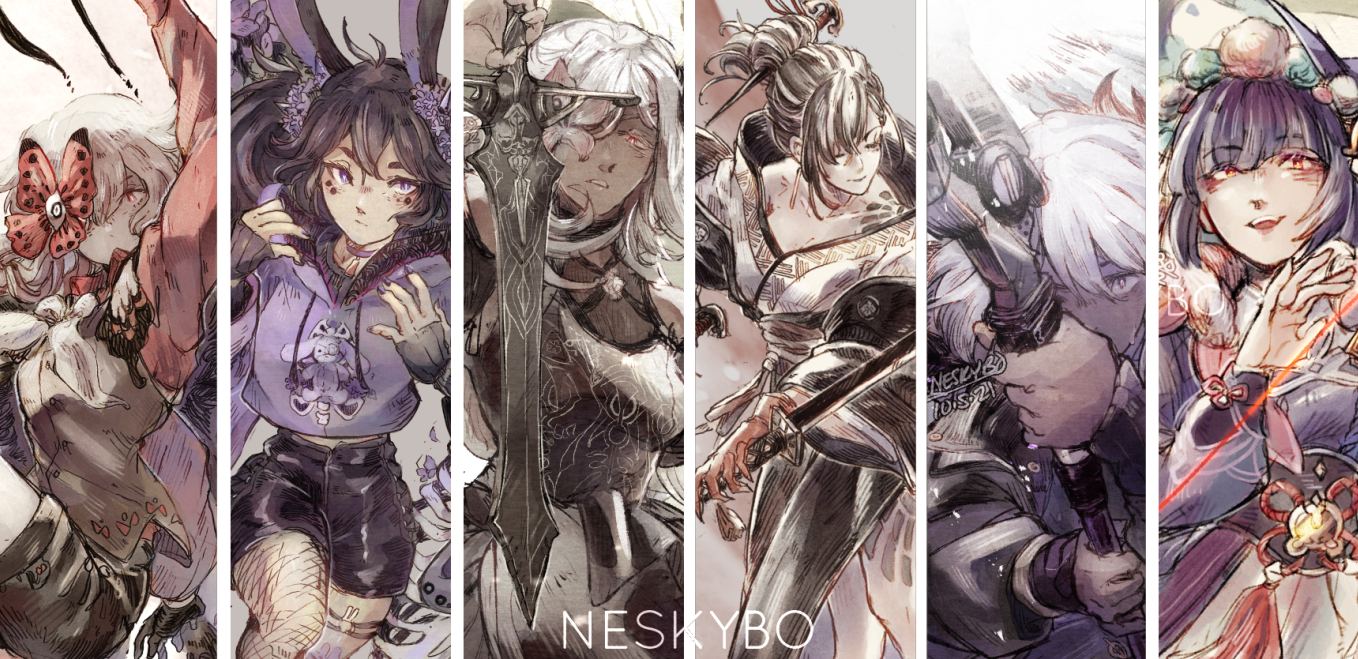 Neskybo is a Filipino-American illustrator and character designer with a BFA in Comic Art from the Minneapolis College of Art and Design.They take inspiration from Japanese, Korean, and Indie comics as well as fantastical video games with character driven and focused stories.Tools: Clip Studio, Pencils